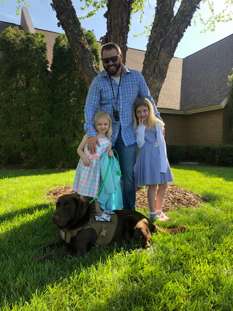 Tim is a retired US Air Force MSgt who served over 20 years on active duty. During this time Tim deployed overseas to many locations as an Air Transportation Specialist in support of the movement of critical cargo for the Air Mobility Command’s missions. Tim served around the world including Iraq and Korean. Picture is Tim his 2 daughters and service dog Remington.